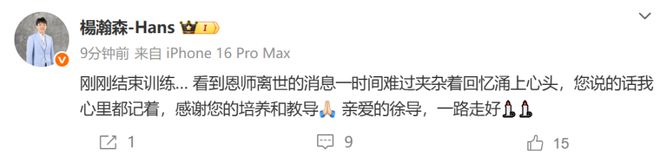 杨瀚森回应恩师徐长锁去世:难过夹杂回忆涌心头 您的话我都记着
