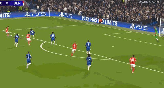 第79分钟,恩佐·费尔南德斯送出过顶传球,门前埃斯特旺头球被特鲁宾神勇扑出。